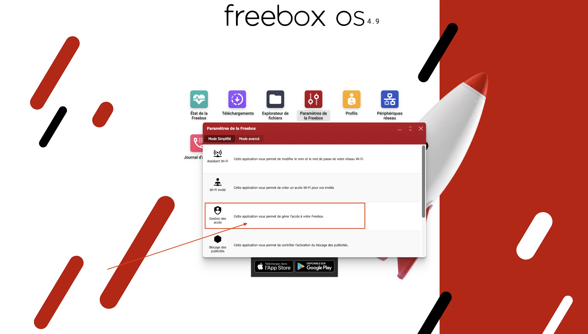 Dans les paramètres de la Freebox, ouvrez la partie Gestion des accès pour retrouver les réglages liés à l accès distant.