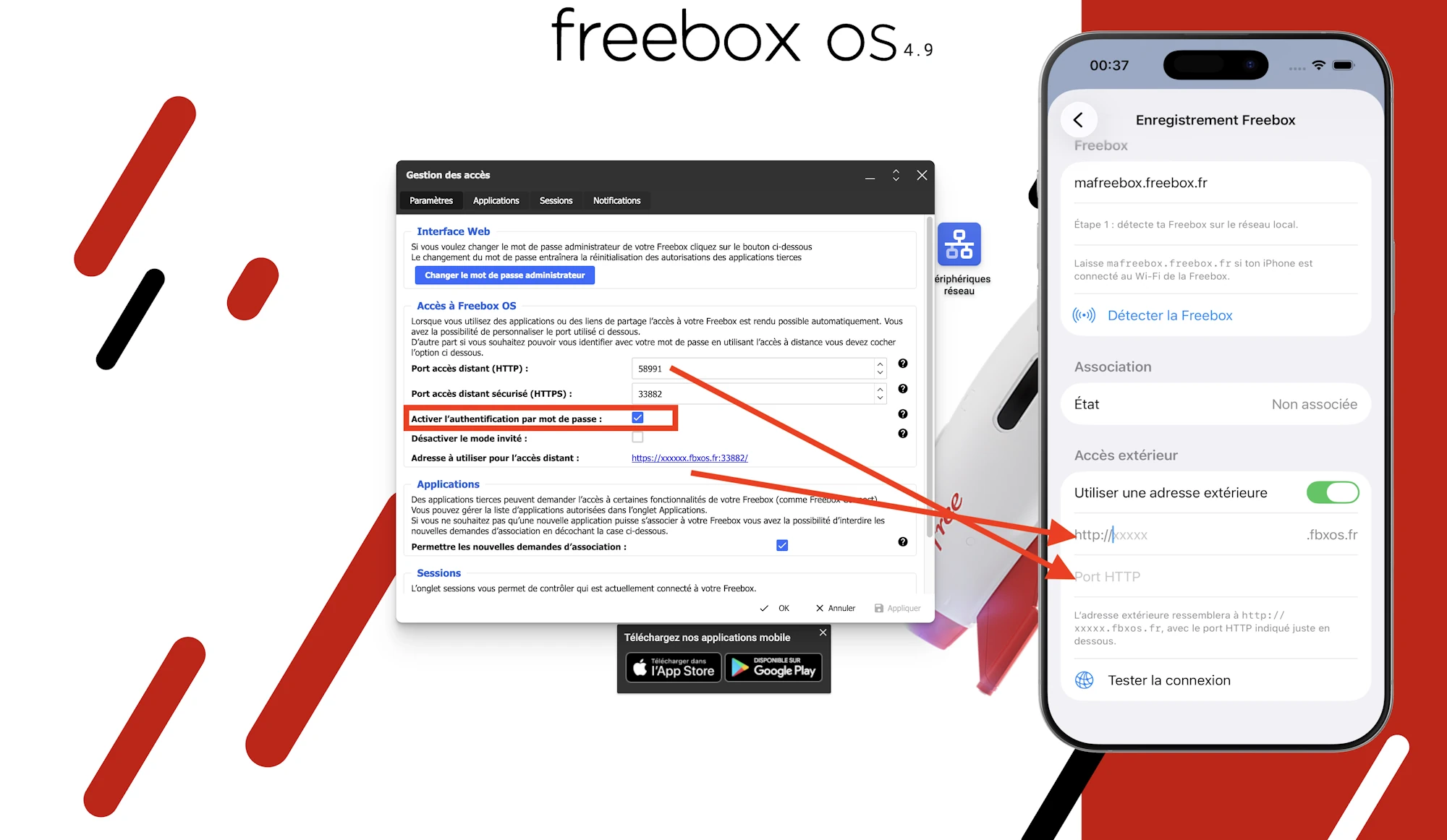 Cochez la case Activer l authentification par mot de passe, puis récupérez les informations nécessaires pour compléter les réglages Freebox dans Oen TV.